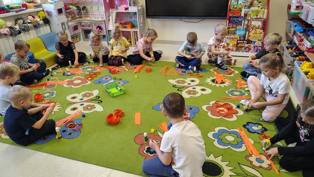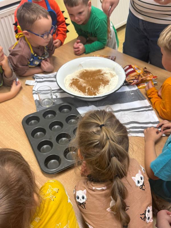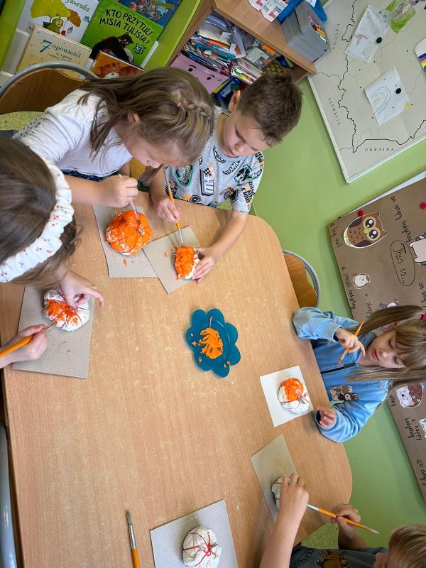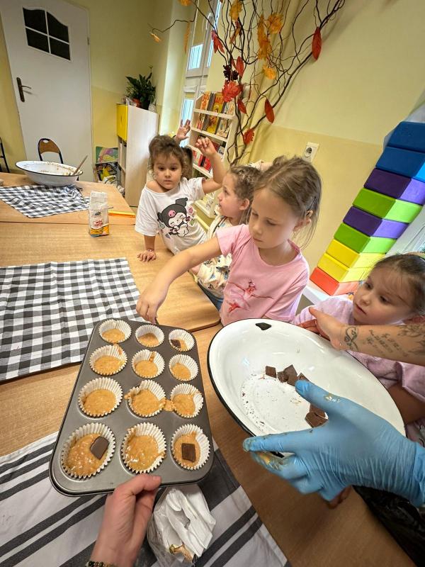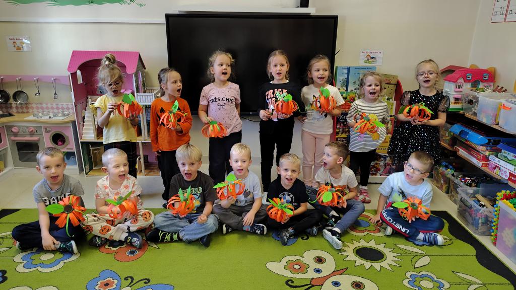W naszym przedszkolu obchodziliśmy wesołe Święto Dyni. Wspólnie tworzyliśmy dyniowe ozdoby. Oglądaliśmy prawdziwą dynie, poznaliśmy jej zapach i kolor. Dzieci przyszły ubrane w pomarańczowe stroje. Wspólnie przygotowaliśmy dyniowe muffinki – najpierw dzieci poznały przepis i wspólnie mieszały składniki. Sala wypełniła się zapachem pieczonych babeczek. Jednak najlepszą część zostawiliśmy na koniec - wspólna degustacja tych samodzielnie wykonanych pyszności.