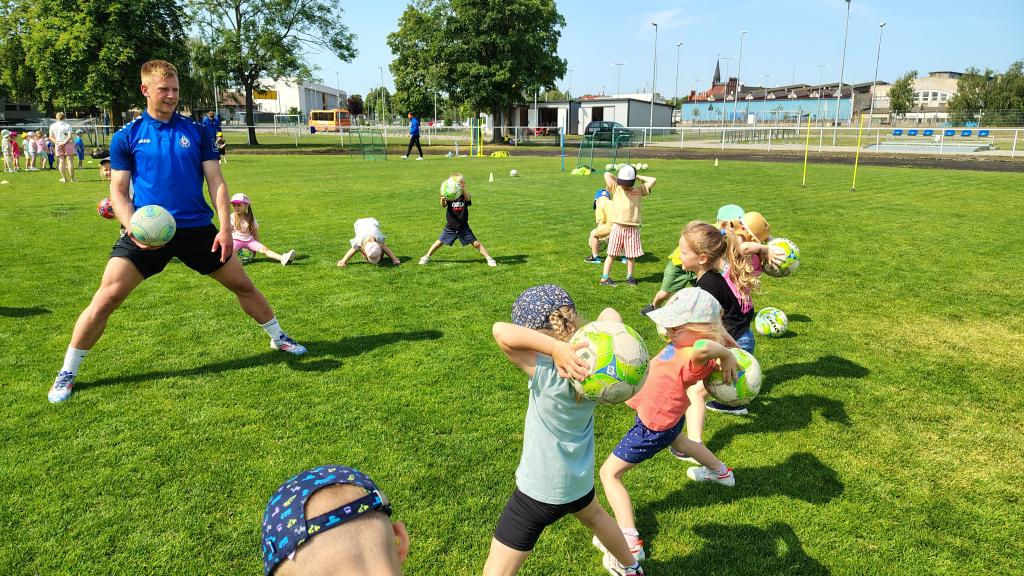 1 czerwca to wyjątkowa data, bowiem w tym dniu każde dziecko obchodzi swoje święto. Tegoroczny Dzień Dziecka postanowiliśmy uczcić aktywnie i sportowo. W tym celu 2 czerwca udaliśmy się na Stadion Miejsko-Gminny, gdzie przedszkolaki ze wszystkich oddziałów wzięły udział w zabawach sportowych, przygotowanych specjalnie dla nich przez trenerów piłkarskich. Dzieci mogły spróbować sił w każdej konkurencji, a trenerzy bacznie przyglądali się tym zmaganiom, by na koniec wszystkich pochwalić. To był dzień pełen wrażeń, a ponieważ pogoda dopisała został zakończony wspólnym piknikiem.