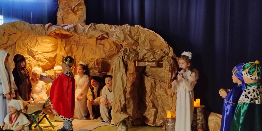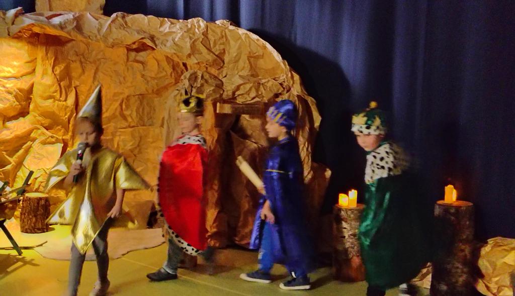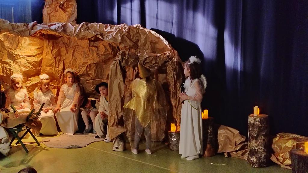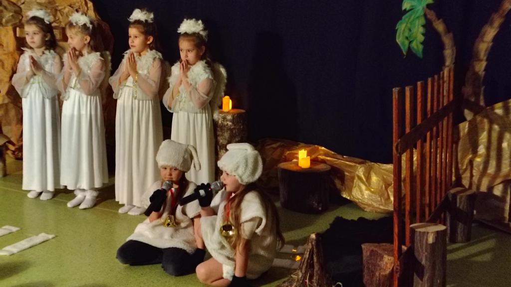 Zgromadzonych gości powitała Dyrektor Przedszkola - pani Olga Gruszczyńska. Wśród niezwykle urokliwej scenerii dzieci z wielkim zaangażowaniem i oddaniem zaprezentowały własne umiejętności wokalne, recytatorskie i taneczne. Kiedy rozbrzmiały pierwsze dźwięki radosnej kolędy na scenie pojawili się Maryja z Józefem. W odwiedziny do Maleńkiej Dzieciny przybywali kolejno aniołowie, pasterze, Trzej Królowie oraz dzieci.