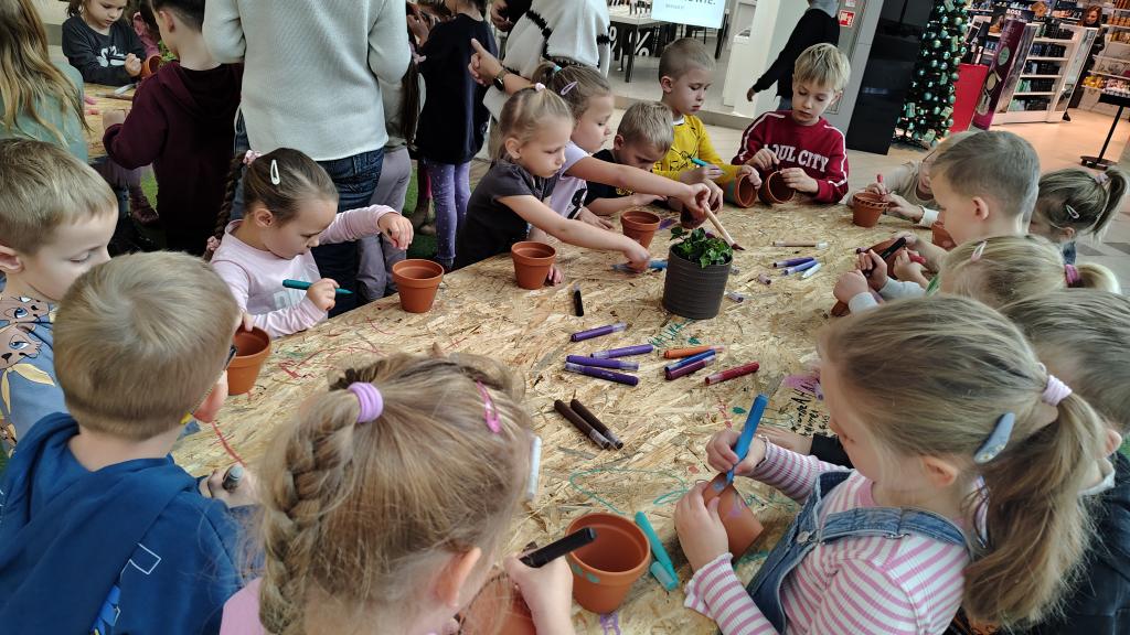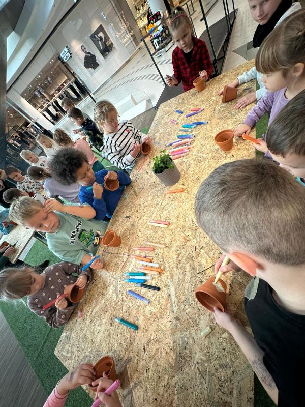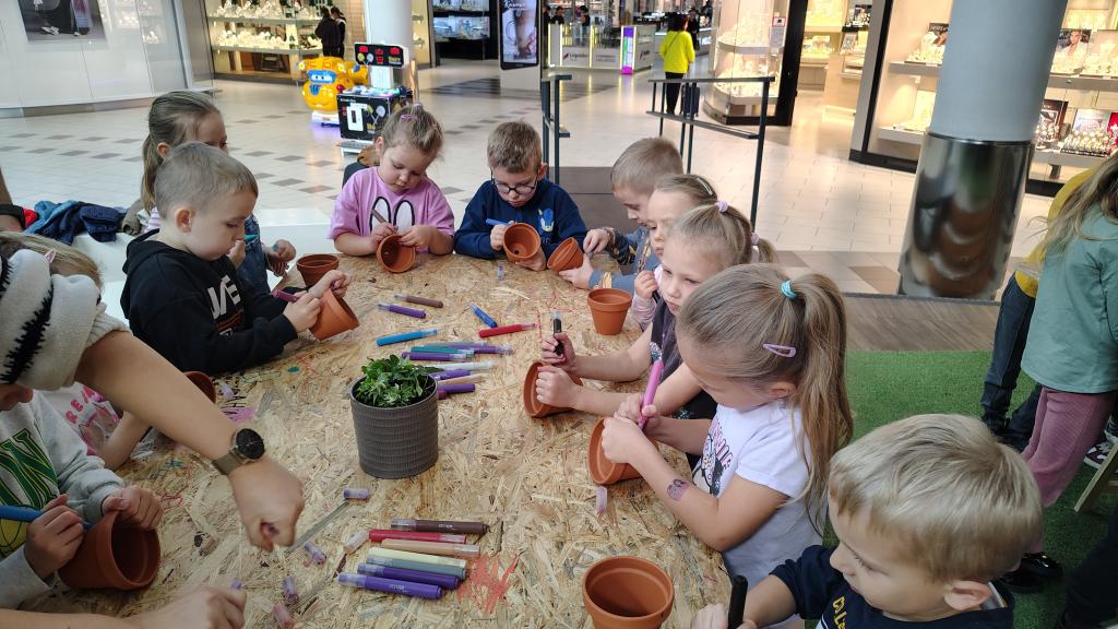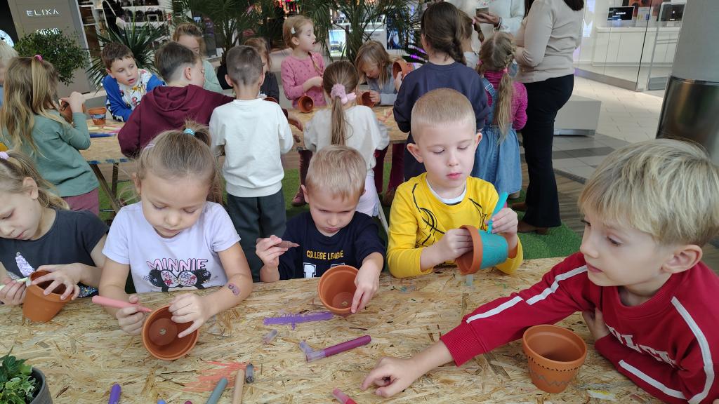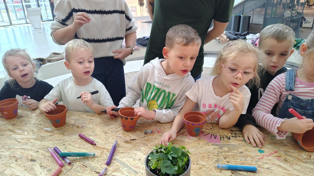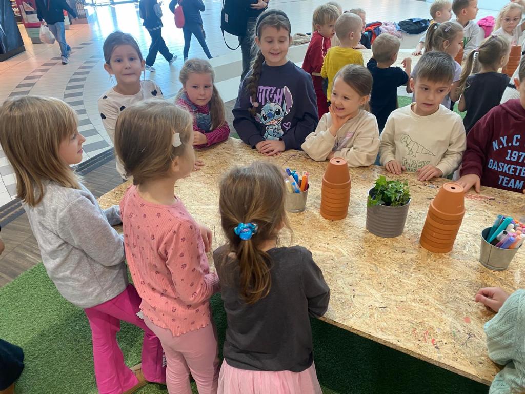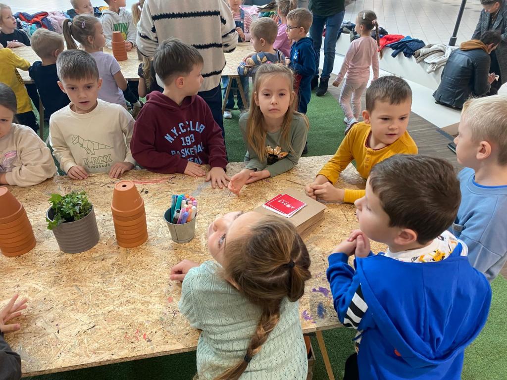 W ubiegły wtorek trzy grupy z naszego przedszkola uczestniczyły w wyjątkowych warsztatach plastyczno-przyrodniczych, które odbyły się w przestrzeni jednej z lokalnych galerii handlowych. Mimo nietypowego miejsca, atmosfera była pełna radości, kreatywności i zielonej energii.