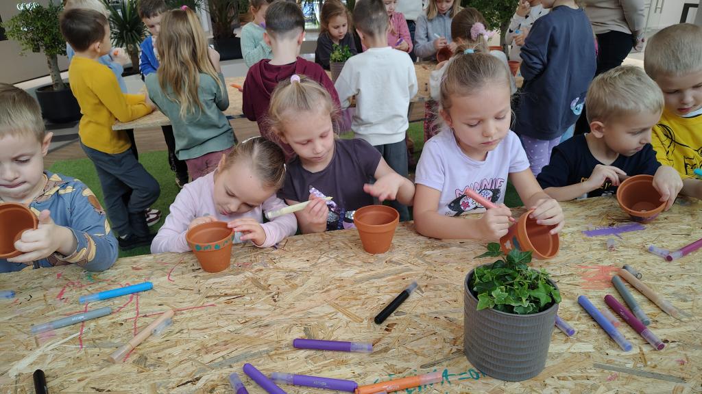 Głównym punktem programu było ozdabianie doniczek według własnego pomysłu, a następnie zasadzenie w nich roślinek. Podczas warsztatów dzieci przypomniały sobie również, jak dbać o rośliny, co jest im potrzebne do wzrostu i dlaczego zieleń jest tak ważna dla naszego zdrowia i środowiska. Prowadzący zajęcia w prosty i przystępny sposób opowiedział o fotosyntezie, podlewaniu i odpowiednim nasłonecznieniu.