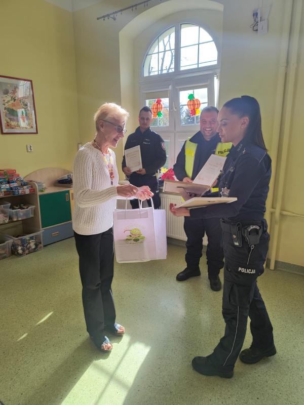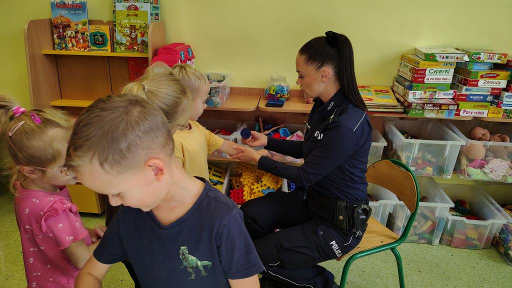 Dużym zainteresowaniem cieszyła się prezentacja wyposażenia policyjnego. Przedszkolaki mogły z bliska obejrzeć radiowóz, przymierzyć czapkę policyjną, a nawet włączyć sygnał świetlny. Funkcjonariusze opowiedzieli o swojej pracy, podkreślając, że ich głównym zadaniem jest pomoc i ochrona obywateli.